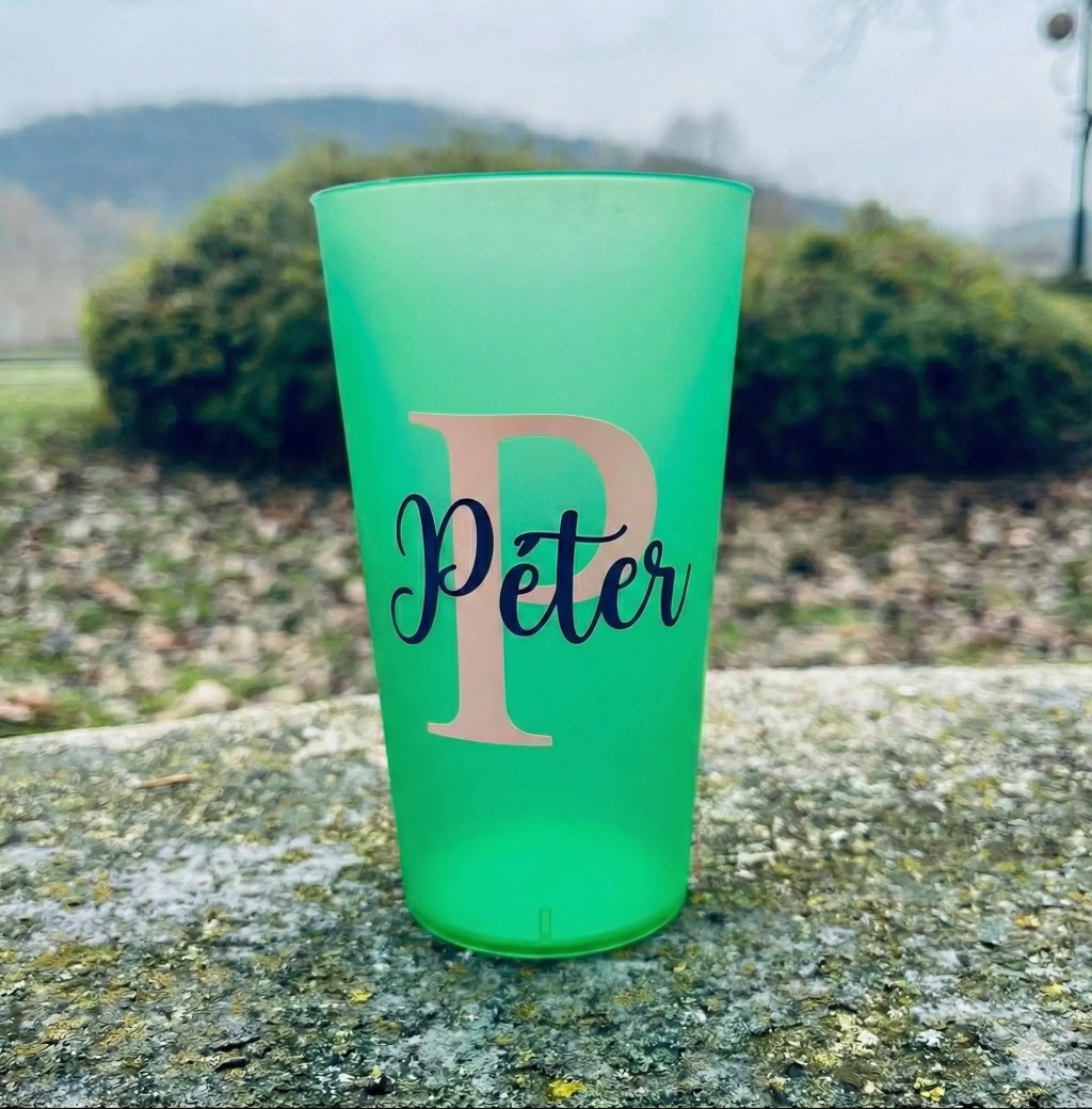 Tűnj ki a tömegből egyedi feliratos repohárral! Legyen szó fesztiválról, családi eseményről, céges buliról vagy csak a mindennapokról, ez a személyre szabott 0,5 literes repohár mindig veled tarthat. A saját névvel, becenévvel vagy bármilyen rövid felirattal ellátott pohár nemcsak praktikus, hanem igazán egyedi is – soha többé nem keverednek össze a poharak!